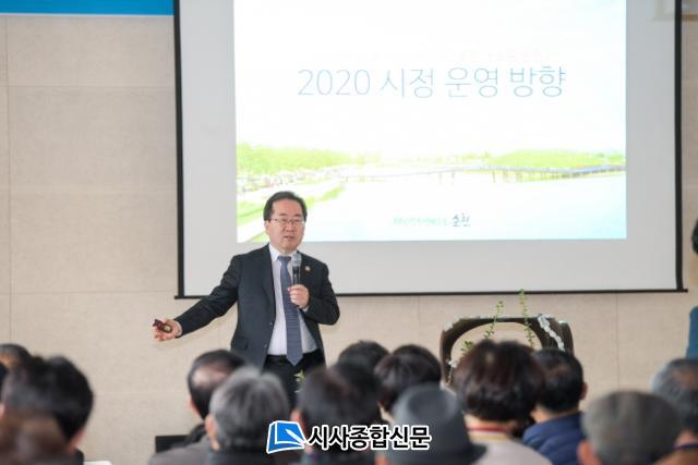 ù¡®½Ã¹Î°úÀÇ ´ëÈ¡¯¿¡´Â 200¿©¸íÀÇ Áö¿ª Áֹεé°ú µµÀÇ¿ø°ú ½ÃÀÇ¿øµéÀÌ Âü¼®ÇØ ½ÃÁ¤ ¿î¿µ¹æÇâ¿¡ ´ëÇØ ¼³¸íÀ» µè°í ÁֹεéÀÇ ÇöÀå ¸ñ¼Ò¸®¸¦ µé¾ú´Ù. ½Ã¹Î°úÀÇ ´ëÈ¿¡¼ Çã¼® ½ÃÀåÀº ¿ÃÇØ ¼øÃµ½Ã´Â ¡®2020µ¿¾Æ½Ã¾Æ ¹®Èµµ½Ã¡¯¸¦ ½½·Î°ÇÀ¸·Î ¼¼¿ì°í, ±³À°°ú »ýŸ¦ °æÁ¦ Ȱ·ÂÀ¸·Î À̾´Â µµ½Ã·Î ¸¸µé¾î°¡´Â 5´ë ºñÀüµî ½ÃÁ¤ ¹æÇâÀ» ¼³¸íÇß´Ù.