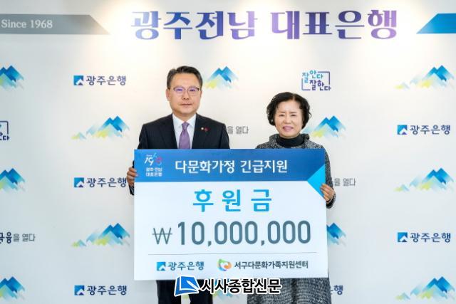 ÈÄ¿ø±Ý Àü´Þ½ÄÀº ¼ÛÁ¾¿í ±¤ÁÖÀºÇàÀå°ú ¹Ú±ÝÀÚ ±¤ÁÖ ¼±¸´Ù¹®È°¡Á·Áö¿ø¼¾ÅÍÀå, °áÈ¥ÀÌÁÖ¿©¼ºÀÌ Âü¼®ÇÑ °¡¿îµ¥ ÁøÇàµÇ¾úÀ¸¸ç, ÈÄ¿ø±Ý Àü´Þ ÈÄ À§·Î¿Í °Ý·Á¸¦ ÀüÇÏ´Â ¸é´ã½Ã°£À» °¡Á³´Ù.
