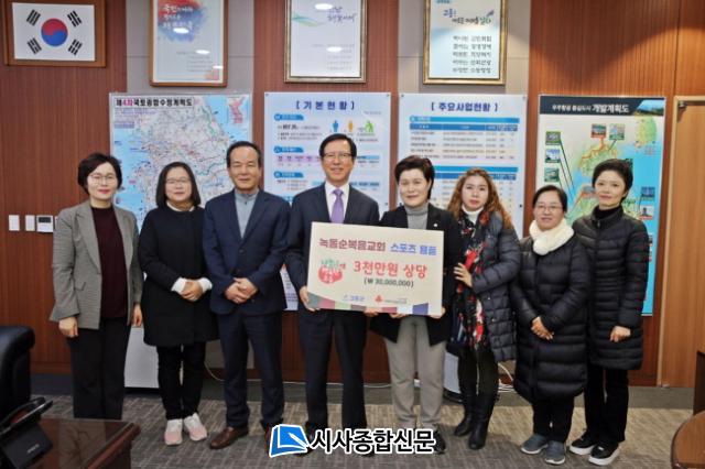 ³ìµ¿¼øº¹À½±³È¸(´ãÀÓ¸ñ»ç ¹é¿µÀÚ)¿¡¼´Â Áö³ 23ÀÏ Ã౸¼±¼ö Ãâ½Å ¹æ¼ÛÀÎ ÀÌõ¼öÀÇ ÈÄ¿øÀ» ¹Þ¾Æ ½ºÆ÷Ã÷ ¿ëǰ 3õ¸¸¿ø »ó´çÀ» ¾î·Á¿î ÀÌ¿ôÀ» À§ÇØ ½á´Þ¶ó¸ç ±âŹÇß´Ù.