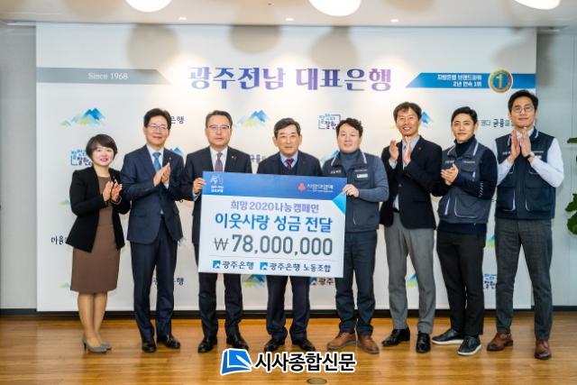 ¼º±Ý Àü´Þ½Ä¿¡´Â ¼ÛÁ¾¿í ±¤ÁÖÀºÇàÀå°ú Àå¿ë°ü ±¤ÁÖÀºÇà ³ëµ¿Á¶ÇÕ À§¿øÀå, ÇÑ»ó¿ø ±¤ÁÖ»çȸº¹Áö°øµ¿¸ð±ÝȸÀåÀÌ Âü¼®ÇßÀ¸¸ç, ±¤ÁÖÀºÇà ÀÓÁ÷¿øÀÇ ¸¶À½À» ¸ðÀº ¼º±ÝÀ» ¡®Èñ¸Á 2020 ³ª´®Ä·ÆäÀΡ¯¿¡ Àü´ÞÇϸç Áö¿ªÀÇ ¼Ò¿ÜµÈ ÀÌ¿ô¿¡ ´ëÇÑ »ç¶û³ª´® ½Çõ¿¡ µ¿ÂüÇß´Ù.