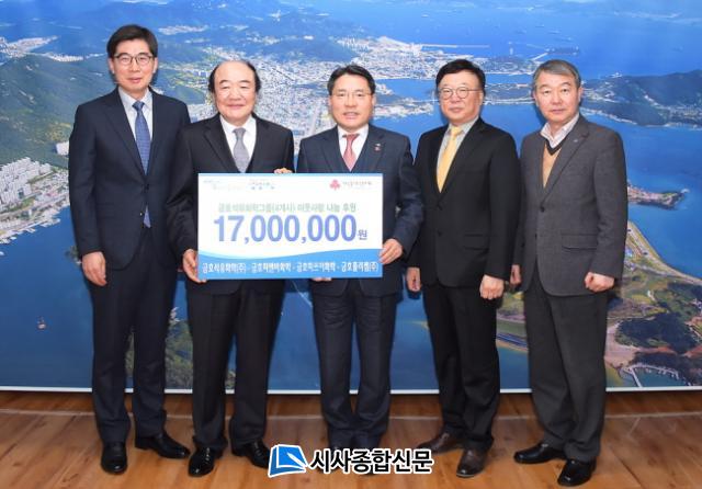 ¿©¼ö½Ã¿¡ µû¸£¸é Áö³ 4ÀÏ ¿ÀÈÄ ±ÝÈ£¼®À¯ÈÇÐ(ÁÖ) ¼Û¼®±Ù ºÎ»çÀå, ±ÝÈ£ÇǾغñÈÇÐ Á¤¿µÈ£ Àü¹«, ±ÝÈ£¹Ì¾²ÀÌÈÇÐ ¼Õ¿µ¿ø ºÎ»çÀå, ±ÝÈ£Æú¸®ÄÍ(ÁÖ) ÃÖ¿µ¼± °øÀåÀå µîÀÌ ¿©¼ö½ÃûÀ» ¹æ¹®ÇØ °ü³» °æ·Î´çÀ» À§ÇØ ½á´Þ¶ó¸ç 1700¸¸ ¿ø »ó´çÀÇ ÈÄ¿øÁõ¼¸¦ ±Ç¿ÀºÀ ¿©¼ö½ÃÀå¿¡°Ô Àü´ÞÇß´Ù.