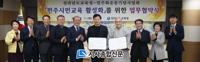 Àü³²±³À°Ã»Àº 11ÀÏ ¿ÀÀü µµ±³À°Ã»¿¡¼ ¹ÎÁÖȿ±â³ä»ç¾÷ȸ¿Í ¾÷¹«Çù¾àÀ» ü°áÇϰí, ¹ÎÁÖȿ Á¤½Å °è½ÂÀ» ÅëÇØ ¹ÎÁֽùα³À°À» È®´ëÇØ ³ª°¡±â·Î Çß´Ù. Çù¾à½Ä¿¡´Â Àå¼®¿õ ±³À°°¨À» ºñ·ÔÇÑ µµ±³À°Ã» °£ºÎ¿Í ¹ÎÁÖȿ±â³ä»ç¾÷ȸ Áö¼± ÀÌ»çÀåÀ» ºñ·ÔÇÑ °ü°èÀÚ µî 10¿© ¸íÀÌ Âü¼®Çß´Ù.