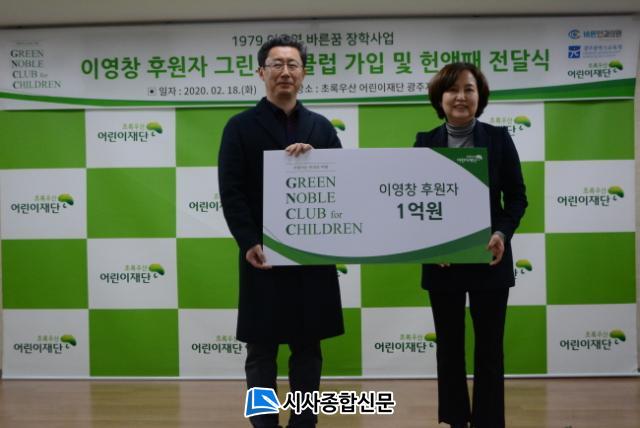 ±×¸°³ëºíŬ·´Àº ¾î¸°À̵éÀÇ ²Þ°ú ¹Ì·¡¸¦ À§ÇØ ÃÊ·Ï¿ì»ê¾î¸°ÀÌÀç´Ü¿¡ 1¾ï ¿ø ÀÌ»óÀ» ±âºÎÇÑ °í¾×ÈÄ¿øÀÚ ¶Ç´Â ´Üü¸¦ ÀǹÌÇÑ´Ù. ÃÊ·Ï¿ì»ê¾î¸°ÀÌÀç´Ü ±¤ÁÖÁö¿ªº»ºÎ°´ç¿¡¼ ÁøÇàµÈ À̳¯ Çà»ç¿¡´Â ±èÀº¿µ ÃÊ·Ï¿ì»ê¾î¸°ÀÌÀç´Ü ±¤ÁÖÁö¿ªº»ºÎÀå, ¼ö¿ÏÁö±¸ ¹Ù¸¥¾È°ú ÀÌ¿µÃ¢¿øÀå ¹× ºÎ¸ð´Ô, ±¤ÁÖ±¤¿ª½Ã±³À°Ã» ¼Õ¼Ò¿µ´ã´çÀÚ ¹× °ü°èÀÚ µîÀÌ Âü¼®ÇØ Çå¾×½ÄÀ» °®°í º¹Áö»ç°¢Áö´ë¿¡ ³õÀÎ ¼Ò¿Ü°èÃþ ÀÎÀç¾ç¼º ¾Æµ¿ Áö¿ø¿¡ ´ëÇÑ ÀÇÁö¸¦ ´ÙÁ³´Ù.