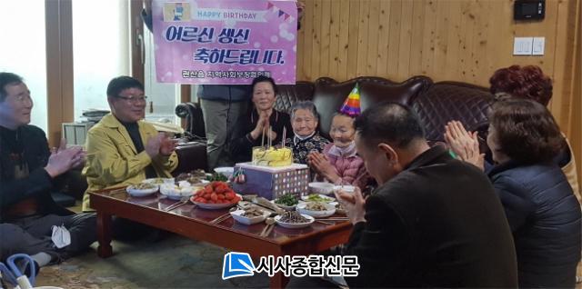 ƯÈ÷, ¸¶À» ¾î¸£½ÅÀÇ »ý½ÅÀ» ÃàÇÏÇϱâ À§ÇØ ÆòÃ̸¶À» ºÎ³àȸ(ȸÀå ¹éÇàÀÚ)¿¡¼ Á÷Á¢ ÁغñÇÑ Á¤¼º½º·¯¿î À½½ÄÀ¸·Î »ý½Å»ó¿¡ µû¶æÇÔÀ» ´õÇß´Ù. À̳¯ »ýÀÏ»óÀ» ¹ÞÀº Á¶ ¸ð ¾î¸£½ÅÀº "³ªÀ̰¡ µé¼ö·Ï »ýÀÏ ÃàÇϸ¦ ¹Þ´Â´Ù´Â »ý°¢À» ÀØ°í »ì¾Ò´Âµ¥ ¶æ¹ÛÀÇ ¼±¹°À» ¹Þ¾Æ ³Ê¹« ±â»Ú´Ù. ¼ÒÁßÇÑ Ãß¾ïÀ» ¼±¹°ÇØÁ༠°¨»çÇÏ´Ù"°í ±â»Û ¸¶À½À» ÀüÇß´Ù.