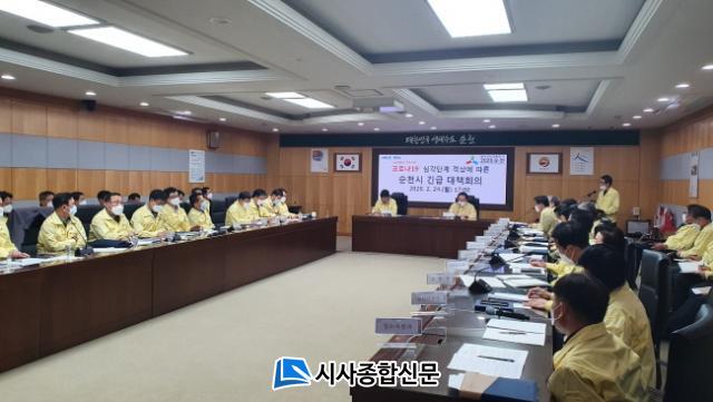 ¼øÃµ½Ã´Â ¡®Äڷγª19¡¯¿¡ Áï°¢ ´ëÀÀÇϱâ À§ÇØ ¼øÃµ½Ã Àç³¾ÈÀü´ëÃ¥º»ºÎ¿¡¼´Â ¸ÅÀÏ 17½Ã ºÎ½ÃÀå ÁÖÀç·Î ÀÏÀÏ »óȲÁ¡°ËȸÀǸ¦ ¿¾î ºÐ¾ßº° ´ëÀÀ»óȲÀ» Á¡°ËÇϰí ÀÖ´Ù.