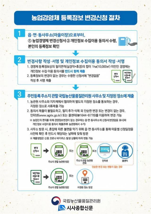 Á÷ºÒ½Åû ´ë»ó ³ó°¡´Â ¿ÃÇØ °øÀÍÁ÷ºÒ±Ý ½ÅûÀ» À§ÇÑ »çÀü ÀýÂ÷·Î ³ó»ê¹°Ç°Áú°ü¸®¿ø ¿Ïµµ»ç¹«¼Ò ¶Ç´Â À¾¸é»ç¹«¼Ò¸¦ ÅëÇØ ³ó¾÷°æ¿µÃ¼¸¦ º¯°æ µî·ÏÇØ¾ß ÇÑ´Ù. ³ó¾÷°æ¿µÁ¤º¸ º¯°æÀÌ ¾ø´Â °æ¿ì¿¡µµ ¡®º¯°æ ¾øÀ½¡¯À¸·Î ÀÛ¼ºÇØ Á¦ÃâÇØ¾ß ÇÑ´Ù.