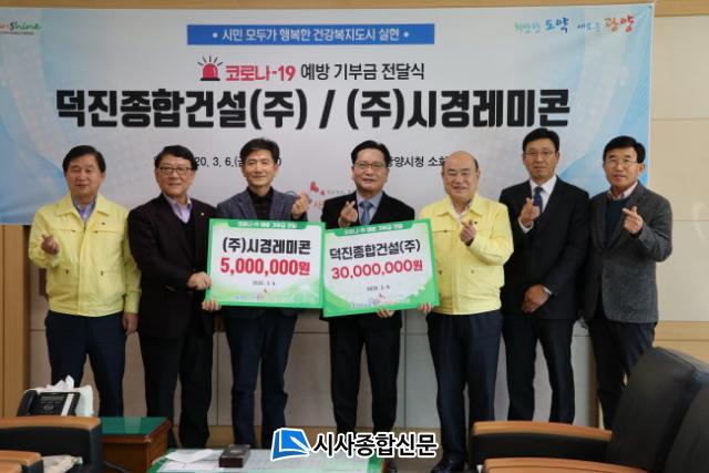 À̹ø¿¡ Àü´ÞµÈ ¼º±ÝÀº ½ÅÁ¾ Äڷγª19·Î ÀÎÇÏ¿© ¾î·Á¿òÀ» °Þ´Â ±¤¾çÁö¿ª¹ÎÀÇ °¨¿° È®»ê¹æÁö ¹× ±Øº¹À» Áö¿øÇϱâ À§ÇÏ¿© ´öÁøÁ¾ÇհǼ³(ÁÖ) 3,000¸¸¿ø, (ÁÖ)½Ã°æ·¹¹ÌÄÜ 500¸¸¿øÀ» Àü´ÞÇÏ¿´´Ù.