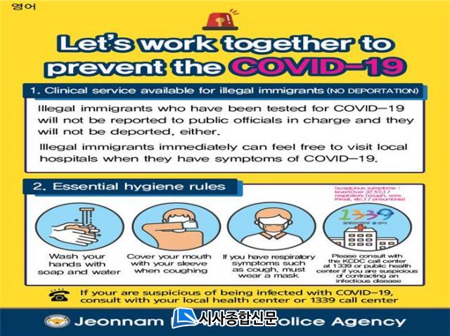 À̳¯ Çà»ç´Â Äڷγª19 ¹ßº´·üÀÌ Áõ°¡ÇÏ°í ´ëÀÀ´Ü°è°¡ ½É°¢´Ü°è·Î °Ý»óÇÔ¿¡ µû¶ó Áö¿ª »çȸÀÇ Àü¿°º´ Â÷´ÜÀ» À§ÇØ ºÒ¹ýü·ùÀÚ Å뺸 ¸éÁ¦ µî Äڷγª19 °ü·Ã ¿µ¾î µî 9°³±¹ ¾ð¾î(¿µ¾î¡¤Áß±¹¡¤º£Æ®³²¡¤Ä¯º¸µð¾Æ․·¯½Ã¾Æ․½º¸®¶ûÄ«․Àεµ³×½Ã¾Æ․Çʸ®ÇÉ․ű¹)·Î µÈ È«º¸¹°À» ´Ù¹®È¼¾ÅÍ,¿Ü±¹ÀÎ °í¿ë¾÷ü ¹× ¿Ü±¹ÀÎ ¹ÐÁýÁö¿ª¿¡ °Ô½Ã ¹× °áÈ¥ÀÌÁÖ¿©¼º ÀÚÁ¶¸ðÀÓÀÇ SNS¸¦ ÅëÇØ °øÀ¯ÇÏ´Â µî Äڷγª19 È®»ê ¿¹¹æÀ» À§ÇÑ È«º¸ Ȱµ¿ Àü°³Çß´Ù.