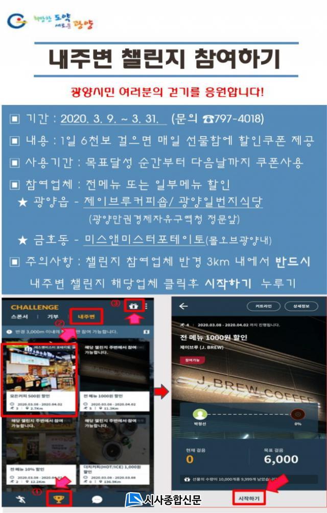 ±¤¾ç½Ã´Â ½Ã¹ÎÀÇ °Ç°ÁõÁø°ú Áö¿ª»ó±Ç Ȱ¼ºÈ¶ó´Â 1¼®2Á¶ÀÇ È¿°ú¸¦ °ÅµÎ±â À§ÇØ ¡®³»ÁÖº¯ 縰Áö¡¯¿¡ µ¿ÂüÇÏ´Â ¼Ò»ó°ø ¾÷ü¸¦ »ó½Ã¸ðÁý¡¤µî·ÏÇϰí, ½Ã¹ÎÀÌ Áñ°Ì°Ô °È±â¿îµ¿À» ½ÇõÇÒ ¼ö ÀÖ´Â ÄÜÅÙÃ÷¸¦ Áö¼ÓÀûÀ¸·Î ¹ß±¼ÇØ ³ª°¥ °èȹÀÌ´Ù.