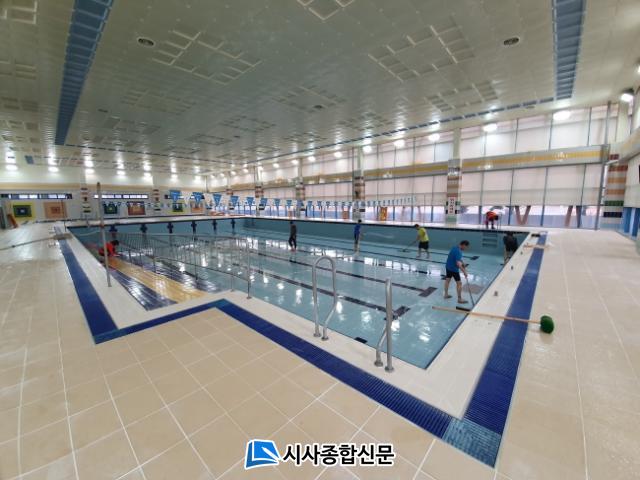 À强±ºÀº ¼ö¿µÀå ¹°À» ¸ðµÎ ¹è¼öÇÏ°í ¹Ù´ÚŸÀÏ ÁÙ´«ÀÛ¾÷À» ¿Ï·áÇßÀ¸¸ç ¼ö¿µÀå ¹Ù´Ú°ú »þ¿öÀå, »ç¹°ÇÔ µîÀ» û¼ÒÇß´Ù. ¶Ç ¿©°ú±â ¿©Àç¿Í ÄÚ½º·ÎÇÁ, Æ®·»Ä¡Ä¿¹ö µî ¼ö¿µ°ü¸®¿ëǰµéÀ» ±³Ã¼Çß´Ù.