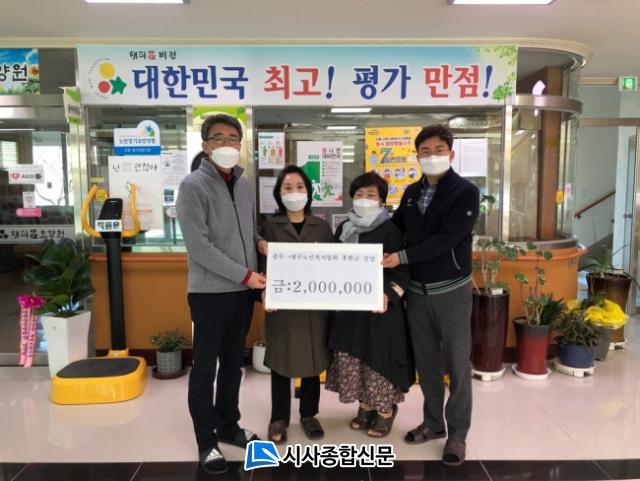 [½Ã»çÁ¾ÇսŹ® = ¿À½ÂÅà ±âÀÚ] ±¤ÁÖ±¤¿ª½Ã ³ëÀκ¹ÁöÇùȸ(ȸÀå ¼ÕÀçÈ«)´Â Äڷγª19·Î °¡Àå ¾î·Á¿òÀ» °Ý°í ÀÖ´Â ´ë±¸ ½Ã¹Îµé°ú ƯÈ÷ °¨¿°º´¿¡ Ãë¾àÇÑ ³ëÀοä¾ç½Ã¼³À» ¿î¿µÇϰí ÀÖ´Â ´ë±¸ ³ëÀκ¹ÁöÇùȸÀÇ ³ë°í¿¡ Á¶±ÝÀ̳ª¸¶ À§·ÎÀÇ ¸¶À½À» ÀüÇϰíÀÚ ÈÄ¿ø±Ý 2¹é¸¸¿øÀ» ´ë±¸±¤¿ª½Ã ³ëÀκ¹ÁöÇùȸ¿¡ 16ÀÏ Àü´ÞÇß´Ù.