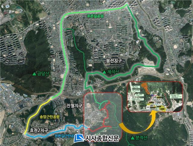 ºÐÀû»ê ´õ Ǫ¸¥ ´©¸®±æ ÄÚ½º°¡ ¿Ï¼ºµÇ¸é Áø¿ùÅÃÁöÁö±¸¿¡¼ Ãâ¹ßÇØ ºÐÀû»êÀ» °ÅÃÄ Á¦¼®»ê µî»ê·Î ¹× ºÀ¼±Áö±¸, ¿ë»êÁö±¸, ¹æ¸²µ¿, ³²±¸ °ü³» Ǫ¸¥±æ°ø¿ø ±¸°£À» ¿À°¥ ¼ö ÀÖ´Â Àå°Å¸® µµ½É ½£±æÀÌ ¿Ï¼ºµÅ °ü³» ÁֹεéÀÇ Èú¸µ Àå¼Ò·Î °¢±¤À» ¹ÞÀ» °ÍÀ¸·Î ±â´ëµÈ´Ù.
