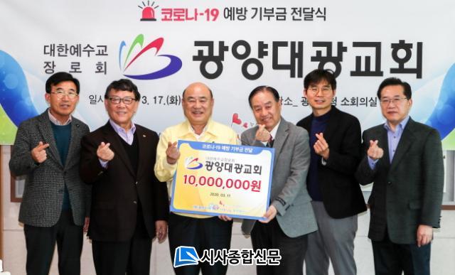 À̳¯ Àü´Þ½Ä¿¡ Âü¼®ÇÑ ±¤¾ç´ë±¤±³È¸ ±èÀç´ö ¼ö¼®Àå·Î´Â ¡°ÇöÀç ±¤¾ç´ë±¤±³È¸´Â »çȸÀû °Å¸®µÎ±â¿¡ µ¿ÂüÇÏ¸ç ¿Â¶óÀÎ ¿¹¹è¸¦ µå¸®°í ÀÖ´Ù°í ¹àÈ÷¸ç, Äڷγª19·Î ÀÎÇØ ƯÈ÷ °íÅë¹Þ°í ÀÖÀ» Ãë¾à°èÃþ Áö¿øÀ» À§ÇØ ¼ºµµµé°ú ½Ê½ÃÀϹÝÀ¸·Î ¹°¹æ¿ï Çå±ÝÀ» ¸ð¾Æ ±âºÎ±ÝÀ» Àü´ÞÇϰí, ¿ì¸® ÁÖÀ§ÀÇ ÀÌ¿ôµé¿¡°Ô Á¶±×¸¸ Èñ¸ÁÀÌ µÇ±æ ¼Ò¸ÁÇÑ´Ù.¡±°í ¸»Çß´Ù.