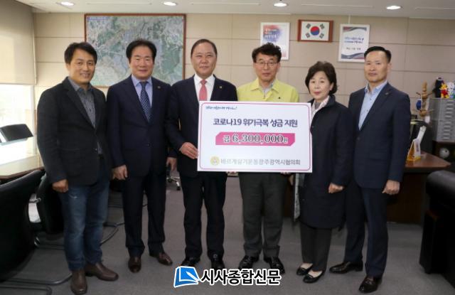 [½Ã»çÁ¾ÇսŹ® = ¿À½ÂÅà ±âÀÚ] ¹Ù¸£°Ô»ì±â¿îµ¿ ±¤ÁÖ±¤¿ª½ÃÇùÀÇȸ°¡ Äڷγª19 ±Øº¹À» ÀÀ¿øÇϱâ À§ÇØ ±¤Áֽÿ¡ ¼º±Ý 630¸¸¿øÀ» Àü´ÞÇß´Ù.
