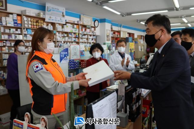 [½Ã»çÁ¾ÇսŹ® = ¿À½ÂÅà ±âÀÚ] ¸¶ÀçÀ± Àü³²¼Ò¹æº»ºÎÀåÀº 20ÀÏ ÀÇ¿ë¼Ò¹æ´ë¿øÀÌ ÆÇ¸Å Áö¿øÀ» Çϰí ÀÖ´Â ¾à±¹À» ã¾Æ ¸¶½ºÅ© ÆÇ¸Å »óȲÀ» »ìÇǰí, ¾à»ç¿Í ÀÇ¿ë¼Ò¹æ´ë¿øÀ» °Ý·ÁÇÏ¸ç ´õ ³ªÀº Àη Áö¿ø ¹æÇâ¿¡ ´ëÇÑ ÇöÀå ¸ñ¼Ò¸®¸¦ ûÃëÇß´Ù.