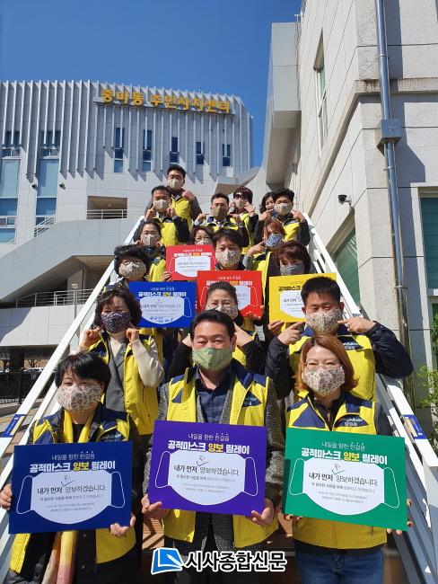 ¸±·¹ÀÌ¿¡ Âü¼®ÇÑ ÁÖ¹ÎÀÚÄ¡À§¿øµéÀº Äڷγª19 ¿¹¹æÀ» À§ÇØ ²À ÇÊ¿äÇÑ »ç¶÷¿¡°Ô ¸¶½ºÅ©¸¦ ¾çº¸ÇÏ°í ¾Æ²¸¾²ÀÚ¸ç °øÀû¸¶½ºÅ© ¾çº¸ ¸±·¹ÀÌ¿¡ Àû±Ø µ¿ÂüÇß´Ù.