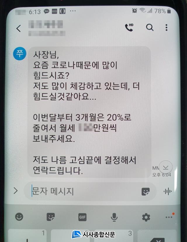 19ÀÏ ÇöÀç, ÀÓ´ë·á °¨¸é ÇýÅÃÀ» ¹Þ´Â °ø¹æÀÇ °Å¸® »ó°¡´Â ÃÑ 11°÷À̰í, ±× ±Ý¾×Àº ¾à 430¸¸¿ø¿¡ ´ÞÇÑ´Ù. ƯÈ÷, ÀÌÁß ÇÑ ÀÓ´ëÀÎÀº ÀÓÂ÷Àο¡°Ô 3¿ù ÀÓ´ë·á¸¦ ´Ù½Ã µ¹·ÁÁÖ¸ç °íÅëºÐ´ã¿¡ ÇÔ²² Çß´Ù.