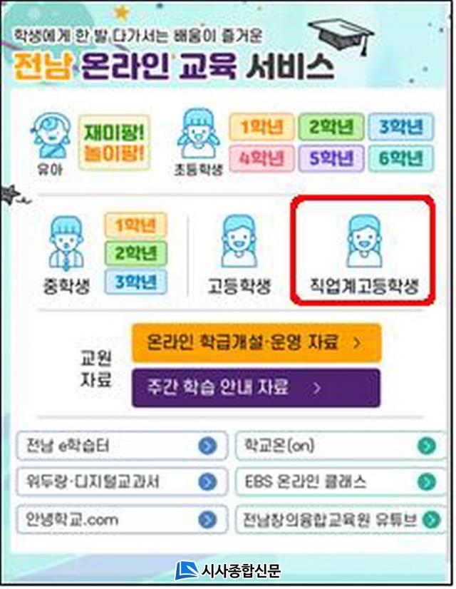 Á÷¾÷°è°í 1Çг⿡°Ô´Â ±³°ú(±¹¾î, ¿µ¾î, Çѱ¹»ç), ÄÄÇ»ÅÍ °ü·Ã ÀÚ°ÝÁõ ±³À°(¿öµå, ¿¢¼¿, ÆÄ¿öÆ÷ÀÎÆ®)À» Á¦°øÇÑ´Ù. 2Çг⿡°Ô´Â ±³°ú(°ø¾÷ÀÔ¹® µî 10°³ Àü¹®±³°ú), ÄÄÇ»ÅͰü·Ã ÀÚ°ÝÁõ ±³À°(¿öµå, ¿¢¼¿, ÆÄ¿öÆ÷ÀÎÆ®), Àι®ÇÐ °ü·Ã ÀڷḦ, 3Çг⿡°Ô´Â Ãë¾÷(»ýȰ)¿µ¾î, NCS¿¬°è ¸éÁ¢Áöµµ, Á÷À忹Àý µîÀÇ ÀڷḦ Á¦°øÇÑ´Ù. ƯÈ÷, °¡Á¤¿¡ PC°¡ ¾ø´Â ÇлýµéÀ» À§Çؼ´Â °³ÀÎ ½º¸¶Æ®ÆùÀ¸·Î ¿Â¶óÀÎ ±³À°¼ºñ½º ÀÌ¿ëÀÌ °¡´ÉÇϵµ·Ï Çß´Ù.