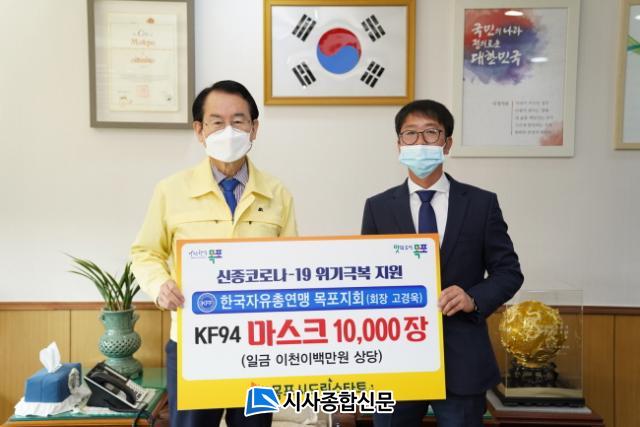 [½Ã»çÁ¾ÇսŹ® = ¿À½ÂÅà ±âÀÚ] Çѱ¹ÀÚÀ¯ÃÑ¿¬¸Í ¸ñÆ÷Áöȸ(ÁöȸÀå °í°æ¿í)¿¡¼ Ãë¾à°èÃþ¾Æµ¿À» À§ÇØ ½á´Þ¶ó¸ç ¾Æµ¿¿ë KF94-¸¶½ºÅ© 1¸¸Àå(2,200¸¸¿ø»ó´ç)À» ¸ñÆ÷½Ã¿¡ Àü´ÞÇß´Ù.