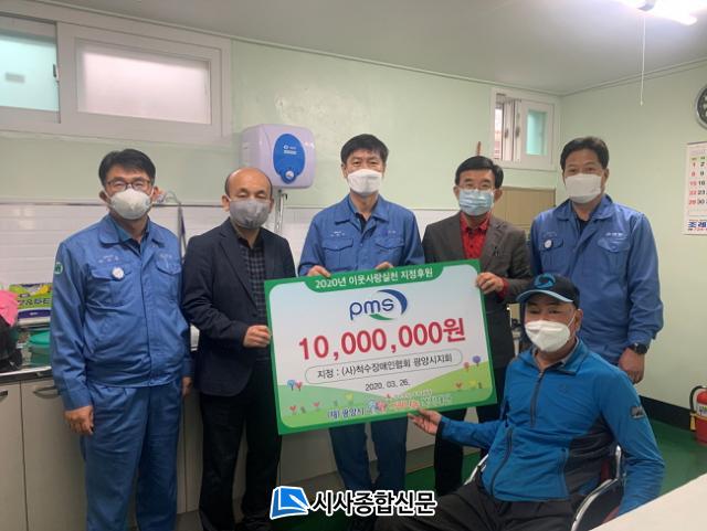 PMS´Â ´õºÒ¾î ÇÔ²² ¹ßÀüÇÏ´Â ±â¾÷½Ã¹Î¿¡ °ø°¨Çϰí Áö¿ª°ú »ó»ýÀ» ½ÇõÇϱâ À§ÇØ Àü Á÷¿øÀÇ À̸§À¸·Î Áö³ 2¿ù 26ÀÏ Æ÷½ºÄÚ±×·ì ¾ÈÀü´ë»ó »ó±Ý 1õ¸¸ ¿øÀ» ±¤¾ç½Ã»ç¶û³ª´®º¹ÁöÀç´Ü¿¡ Àü¾× ÁöÁ¤ ±âŹÇß´Ù.