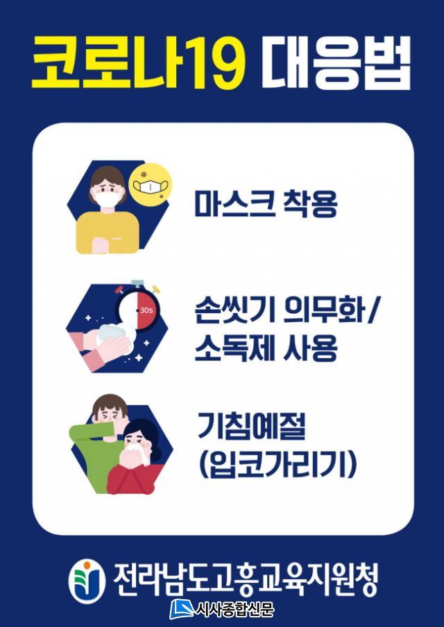 [½Ã»çÁ¾ÇսŹ® = ¿À½ÂÅà ±âÀÚ] °íÈï±³À°Áö¿øÃ»(±³À°Àå Á¤±æÁÖ)¿¡¼´Â ¿ì¸®Áö¿ªÀÇ Äڷγª19 ¿¹¹æÀ» À§ÇÏ¿© Äڷγª ¿¹¹æ Æ÷½ºÅ͸¦ Á¦ÀÛÇÏ¿© 3¿ù 30ÀϺÎÅÍ °íÈïÀÏ´ë Çб³, Çпø ¹× ±³½À¼Ò, ´ÙÁßÀÌ¿ë½Ã¼³ µî¿¡ ¹èºÎÇÑ´Ù.