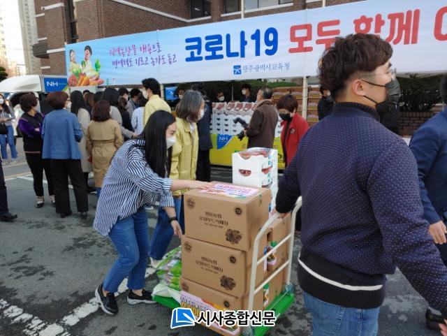 Áö³ 27ÀÏ ±¤Áֽñ³À°Ã» º»°ü ¾Õ°ú µ¿¡¤¼ºÎ±³À°Áö¿øÃ»¿¡¼ ¿¸° ³óÃà»ê¹° ±¸¸Å Çà»ç¿¡¼± ¸î ½Ã°£ ¸¸¿¡ ³ó»ê¹° ²Ù·¯¹Ì 341»óÀÚ, ½Ò 10kg 56Æ÷´ë, µþ±â 242»óÀÚ, Ű¿ö 202ºÀÁö°¡ ÆÇ¸ÅµÆ´Ù. ½Ã±³À°Ã» °ü°èÀÚ´Â ¡°Á÷¿øµéÀÌ ³ó°¡ µ½±â¿¡ ¾ÕÀå¼¼ ¸¹ÀÌ ±¸¸ÅÇß´Ù¡±¸ç ¡°±¸¸ÅÇÑ ³óÃà»ê¹° ǰÁúµµ ÁÁ¾Ò´Ù¡±°í ÀüÇß´Ù.