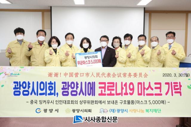 ±¤¾ç½ÃÀÇȸ´Â 3¿ù 30ÀÏ, ÀÇ¿ø»ó´ã½Ç¿¡¼ ±è¼ºÈñ ÀÇÀå°ú ½ÃÀÇ¿ø µîÀÌ Âü¼®ÇÑ °¡¿îµ¥ À×Ä¿¿ì½ÃÀÇȸÀÇ Äڷγª19 ¿¹¹æ¿ë ¸¶½ºÅ©¸¦ (Àç)±¤¾ç½Ã »ç¶û³ª´® º¹ÁöÀç´Ü(¼°æ½Ä ÀÌ»çÀå)¿¡ ±âŹÇß´Ù. ÀÌ ¹°Ç°Àº ½Ã Àç³¾ÈÀü´ëÃ¥º»ºÎ¿¡ Àü´ÞµÉ ¿¹Á¤ÀÌ´Ù.