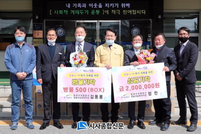 [½Ã»çÁ¾ÇսŹ® = ¿À½ÂÅà ±âÀÚ] K-water Àü³²¼³²±ÇÁö»çÀå Á¤Âù°ú ÀåÈï¼öµµ°ü¸®´ÜÀå ±èµ¿·æÀº ¡®Äڷγª19¡¯·Î °íÅëÀ» ¹Þ°í ÀÖ´Â ÀÌ¿ô¿¡°Ô ÈûÀ» º¸ÅÂ°í ½Í´Ù¸ç 31ÀÏ ÀåÈﱺ¿¡ ¼º±Ý 200¸¸¿ø°ú º´¹° 500box¸¦ °¢°¢ ±âŹÇß´Ù.