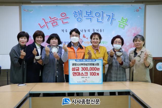 | ±¤¾ç½Ã ¼ºÎ¿©¼ºÀÚ¿øºÀ»çȸ, ±¤¾çº¹ÁöÀç´Ü¿¡ ¼º±Ý±âŹ ¼º±Ý 30¸¸¿ø, ¸é¸¶½ºÅ© 100°³ Àü´Þ