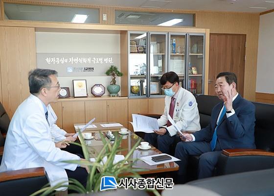 ¾îÁ¦(3¿ù 31ÀÏ) ¿ÀÈÄ 3½Ã 30ºÐ ¹Ú ÀÇ¿øÀº Á¶¼±´ëÇб³º´¿øÀ» ¹æ¹®ÇØ ¡¸Äڷγª19 »çÅ °ü·Ã ´ëÀÀü°è ¸ð´ÏÅ͸µ ¹× °³¼±¹æ¾È ¸¶·Ã¡¹À» À§ÇÑ °£´ãȸ¸¦ °¡Á³´Ù. À̳¯ °£´ãȸ¿¡¼´Â Á¤Á¾ÈÆ Á¶¼±´ëÇб³ º´¿øÀå°ú ºÎ¿øÀå, ±×¸®°í Á¶¼±´ëÇб³º´¿ø °ü°èÀÚµéÀÌ Âü¼®Çß´Ù.