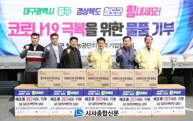 ³ª»ý¼® Ä¥·®³ó°ø´ÜÁö ÀÔÁÖ±â¾÷ÇùÀÇȸÀåÀº ¡°±¹°¡Àû Àç³ »çÅ·Π¾î·Á¿òÀ» °Þ°í ÀÖ´Â ´ë±¸±¤¿ª½Ã Áß±¸¡¤°æºÏ ûµµ±º¿¡ Áö¿ª¹Î¿¡°Ô ÀÛ°Ô³ª¸¶ µµ¿òÀÌ µÇ°íÀÚ ¿ì¸® ³ó°ø´ÜÁö¿¡¼ »ý»êÇÑ Á¦Ç°À» Àü´ÞÇÏ°Ô µÆ´Ù¡±¶ó¸ç ¡°Äڷγª19°¡ À̸¥ ½ÃÀÏ ³»¿¡ Á¾½ÄµÇ¾î ¸ðµç ±¹¹ÎÀÌ ÇູÇÏ°í °Ç°ÇÑ ÀÏ»ó»ýȰÀ» µÇã±â ¹Ù¶õ´Ù¡±°í ¸»Çß´Ù