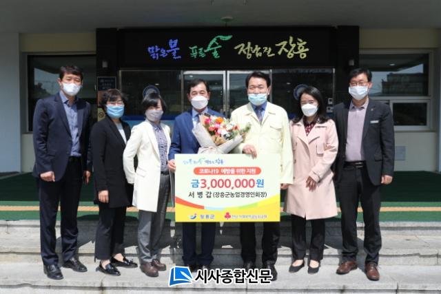 [½Ã»çÁ¾ÇսŹ® = ¿À½ÂÅà ±âÀÚ] ¼º´°© Çѱ¹³ó¾÷°æ¿µÀÎ ÀåÈﱺ¿¬ÇÕȸÀåÀÌ Áö³ 7ÀÏ Äڷγª19 À§±â ±Øº¹À» À§ÇÑ ¼º±Ý 300¸¸¿øÀ» ÀåÈﱺ¿¡ ±âŹÇß´Ù.