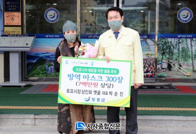 [½Ã»çÁ¾ÇսŹ® = ¿À½ÂÅà ±âÀÚ] Á¤³²Áø ÀåÈï Åä¿ä½ÃÀå¿¡¼ õ¿¬¿°»ö¾÷ü¸¦ ¿î¿µÇÏ´Â ¹Ú¼øÁø ¿¾°ñ ´ëÇ¥°¡ Á÷Á¢ ¸¸µç ¸¶½ºÅ© 300°³¸¦ ÀåÈﱺ¿¡ Àü´ÞÇß´Ù.