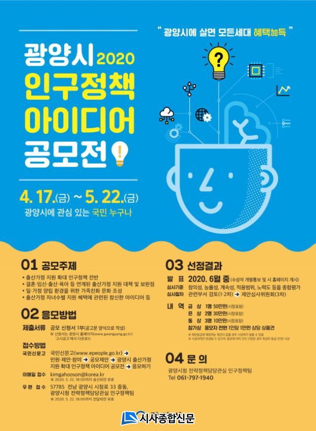 °ø¸ð¿Í °ü·ÃÇÑ ÀÚ¼¼ÇÑ »çÇ×Àº ±¤¾ç½Ã ȨÆäÀÌÁö °ø°í¶õÀ» È®ÀÎÇϰųª Àü·«Á¤Ã¥´ã´ç°ü½Ç Àα¸Á¤Ã¥ÆÀ(¢Î061-797-1940)À¸·Î ¹®ÀÇÇÏ¸é µÈ´Ù.