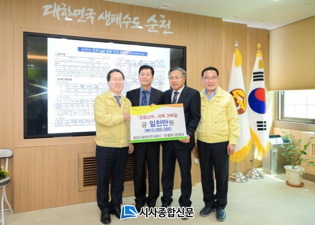 [½Ã»çÁ¾ÇսŹ® = Àå¹Î±Ô ±âÀÚ] ¼øÃµ½Ã °ø°øÇϼöµµ½Ã¼³ ´ëÇà¾÷üÀΠȯ°æ½Ã¼³°ü¸®ÁÖ½Äȸ»ç(´ëÇ¥ ÀÓÃß¼·)¿Í ¢ßµ¿ºÎ±×¸°È¯°æ(´ëÇ¥ Á¤¿À¿ë)ÀÌ Áö³ 20ÀÏ Äڷγª19ÀÇ ¾î·Á¿òÀ» ÇÔ²² ±Øº¹Çسª°¡´Â ¡®¼øÃµÇü ±ÇºÐ¿îµ¿¡¯¿¡ ¼º±Ý 1õ¸¸¿øÀ» ±âŹÇß´Ù.