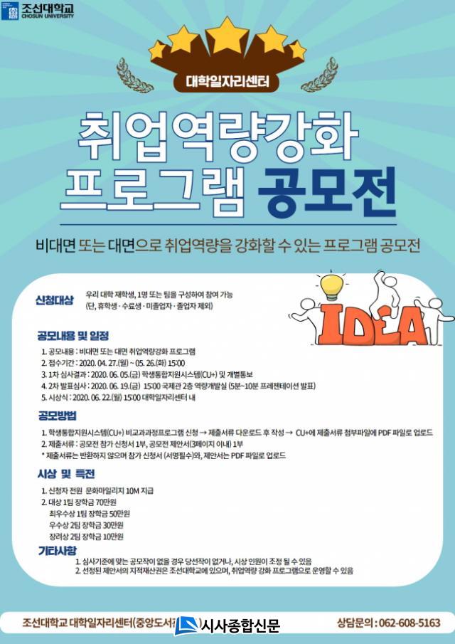 | Á¶¼±´ëÇб³ ´ëÇÐÀÏÀÚ¸®¼¾ÅÍ, ¡°ÇлýÀÌ Ãë¾÷ ÇÁ·Î±×·¥ Á÷Á¢ ±âÈ¹ÇØ¿ä¡± ¡®Ãë¾÷¿ª·®°È ÇÁ·Î±×·¥ °ø¸ðÀü¡¯ °³ÃÖ