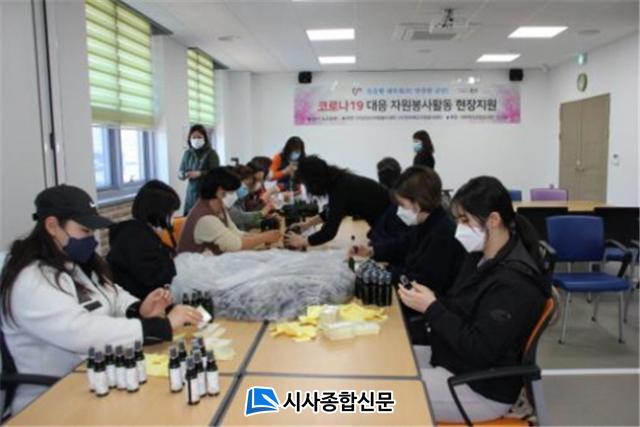 [½Ã»çÁ¾ÇսŹ® = ³²Àç¿Á ±âÀÚ] (»ç)±º»ê½ÃÀÚ¿øºÀ»ç¼¾ÅÍ¿¡¼´Â Áö³ 23ÀÏ, Äڷγª19 ¹ÙÀÌ·¯½º È®»êÀÇ ¿¹¹æÃ¥ÀÇ ÀÏȯÀ¸·Î ¼¾ÅÍ ±³À°½Ç¿¡¼ Á¦ÀÛÇÑ ¼Õ¼Òµ¶Á¦ ŰƮ¸¦ Ãë¾à¼¼´ë ¾î¸£½Å ¹× Àå¾ÖÀεéÀÌ ÀÌ¿ëÇÏ´Â º¹Áö±â°ü¿¡ ¹èÆ÷Çß´Ù°í ¹àÇû´Ù.
