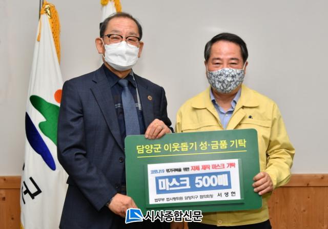 | ¹ý»ç¶ûÀ§¿ø ´ã¾çÁö±¸ ¼»ýÇö ÇùÀÇȸÀå, ´ã¾ç±º¿¡ ¸é ¸¶½ºÅ© 500¸Å ±âŹ ÀÌ¿ôÀÇ Äڷγª19 ±Øº¹À» À§ÇØ ½á´Þ¶ó¸ç ÀÚüÁ¦ÀÛÇÑ ¸é ¸¶½ºÅ© Àü´Þ