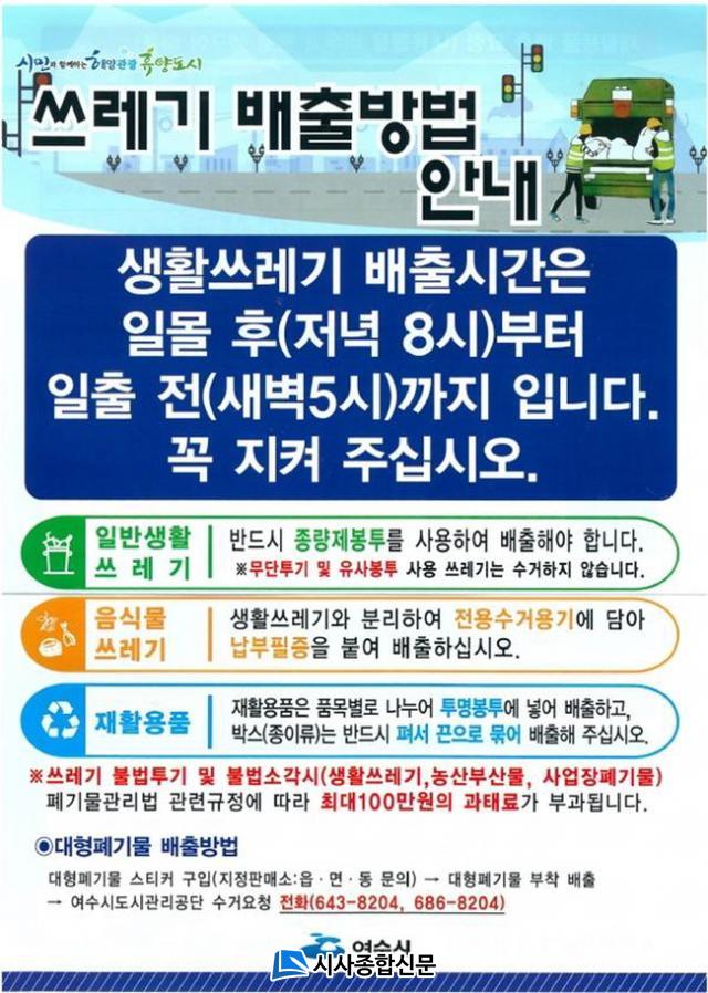 ¿©¼ö½Ã´Â »ýȰ¾²·¹±âÀÇ ¿Ã¹Ù¸¥ ¹èÃâ °ü¸®¸¦ À§Çؼ´Â ½Ã¹ÎµéÀÇ ¼º¼÷µÈ ½Ã¹ÎÀǽİú ±âÃÊÁú¼°¡ ¿ì¼±µÇ¾î¾ß ÇÔÀ» °Á¶Çϸç, È«º¸Àü´ÜÁö 5¸¸ ºÎ¿Í ºÒ¹ýÅõ±â Ãë¾àÁö¿¡ Çö¼ö¸· 150¿© °³¸¦ ³»°Å´Â µî ½Ã¹ÎµéÀÇ ¿Ã¹Ù¸¥ ¾²·¹±â ¹èÃâ¹®È Á¶¼º¿¡ ÁÖ·ÂÇϰí ÀÖ´Ù.