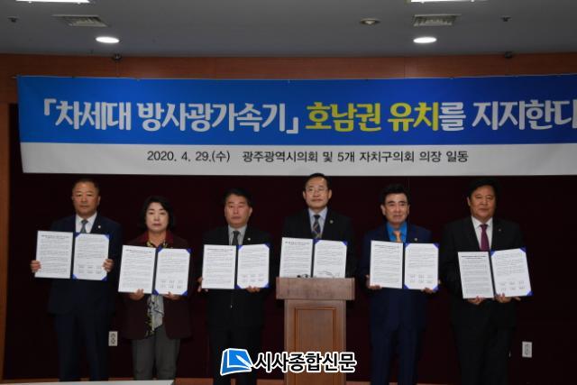 ±¤ÁÖ½ÃÀÇȸ ±èµ¿Âù ÀÇÀå°ú 5°³ ÀÚÄ¡±¸ ÀÇȸ ÀÇÀå(µ¿±¸ÀÇȸ ¹ÚÁ¾±Õ, ¼±¸ÀÇȸ °±â¼®, ³²±¸ÀÇȸ Á¶±âÁÖ, ºÏ±¸ÀÇȸ °íÁ¡·Ê, ±¤»ê±¸ÀÇȸ ¹èÈ«¼®)Àº 29ÀÏ, ¡®4¼¼´ë ¿øÇü ¹æ»ç±¤°¡¼Ó±â¡¯ÀÇ È£³²±Ç À¯Ä¡¸¦ ÁöÁöÇÏ´Â ¼º¸íÀ» ¹ßÇ¥Çß´Ù.