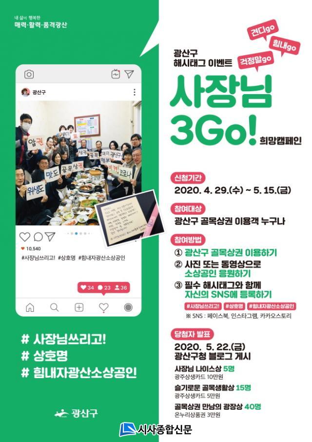 [½Ã»çÁ¾ÇսŹ® = ¿À½ÂÅà ±âÀÚ] ±¤Áֽà ±¤»ê±¸(±¸Ã»Àå ±è»ïÈ£)°¡ Äڷγª19 Àå±âÈ·Î °æ¿µ¿¡ ¾î·Á¿òÀ» °Þ´Â °ñ¸ñ»ó±Ç ¼Ò»ó°øÀÎÀ» ÀÀ¿øÇϰí, ¾ó¾îºÙÀº ¼Òºñ½É¸®¸¦ ÁøÀÛÇϱâ À§ÇØ ´ÙÀ½´Þ 15ÀϱîÁö ¡®»çÀå´Ô, 3Go! Èñ¸Á Ä·ÆäÀΡ¯À» ÃßÁøÇÑ´Ù.