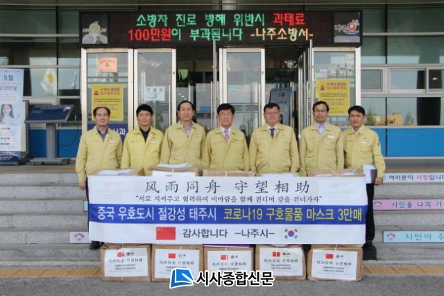³ªÁֽô Áß±¹¿¡¼ Áö¿øµÈ ¿¹¹æ ¸¶½ºÅ©¸¦ Àç³¾ÈÀü´ëÃ¥º»ºÎ¿¡ ºñÄ¡ÇÏ°í ¸¶½ºÅ© ±¸ÀÔÀÌ ¾î·Á¿î Àú¼ÒµæÃþ°ú ½Ãû, À¾.¸é.µ¿À» ¹æ¹®ÇÏ´Â ½Ã¹Îµé¿¡°Ô ¹èºÎÇÒ °èȹÀÌ´Ù.°ÀÎ±Ô ³ªÁÖ½ÃÀåÀº ¡°³ªÁÖ½Ã¿Í Áß±¹ ÅÂÁÖ½Ã¿Í ³²Ã¢½Ã°¡ ÁÖ°í¹ÞÀº ¸¶½ºÅ©´Â ´Ü¼øÈ÷ ¹æ¿ª ¹°Ç° Áö¿øÀ» ³Ñ¾î ¾î·Á¿î ½Ã±â¿¡ ÇÔ²² ¿ª°æÀ» À̰ܳ»¸é¼ ´õ¿í ±í¾îÁø ¿ìÁ¤ÀÇ »ó¡À¸·Î ±â¾ïµÉ °ÍÀ̶ó¸ç, ÅÂÁֽùεéÀÇ µû¶æÇÑ ¸¶À½ÀÌ Àß ÀüÇØÁú ¼ö ÀÖµµ·Ï ¼ÒÁßÈ÷ »ç¿ëÇϰڴ١±°í È´ä ¸Þ½ÃÁö¸¦ ÀüÇß´Ù.