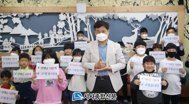 Àå¼®¿õ ±³À°°¨Àº 4ÀÏ(¿ù) ¸ñÆ÷ »êÁ¤ÃʵîÇб³¿Í ¼ºÎÀ¯Ä¡¿øÀ» ¹æ¹®ÇØ ±ä±Þ µ¹º½±³½Ç¿¡ Âü¿©Çϰí ÀÖ´Â Çлý(¿ø»ý)µé°ú ÇÔ²² ¡®´öºÐ¿¡¡¯ 縰Áö Ä·ÆäÀÎÀ» ¹úÀÎ µÚ °ü·Ã ¿µ»ó°ú »çÁøÀ» ÀÚ½ÅÀÇ »çȸ°ü°è¸Á¼ºñ½º(SNS)¿¡ ¿Ã·È´Ù.
