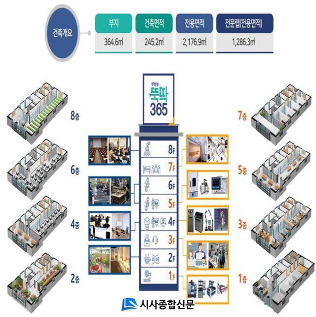 °ø°£Àº ÃÑ 8ÃþÀ¸·Î Á¶¼ºµÇ¸ç °íÇÏÁß Àü¹®Àåºñ ¼³Ä¡ °ø°£ºÎÅÍ º¹ÇÕ¼ÒÀç ¼ºÇü½Ç, Àü±â․ÀüÀÚ ÀÀ¿ë½Ç, 3DµðÁöÅÐ ±³À°½Ç, Á¶¸³․ÈÄ °¡°ø½Ç, ½ÃÁ¦Ç° Àü½Ã°ø°£ µî ±³À°, Á¦ÀÛ, Àü½Ã µîÀÇ ¸ðµç °úÁ¤À» ¾Æ¿ì¸£°í ÀÖ´Ù.