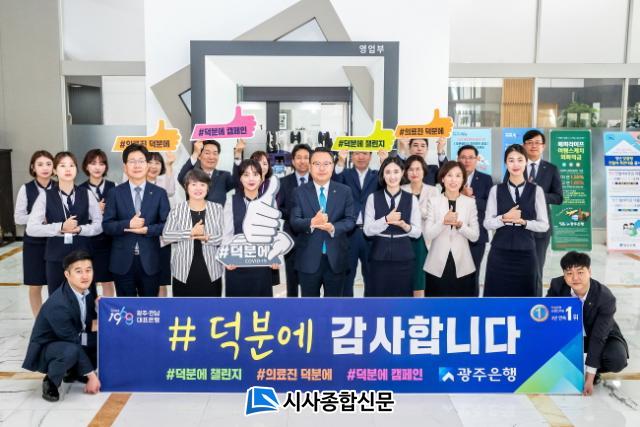 ¼ÛÁ¾¿í ±¤ÁÖÀºÇàÀå°ú ÀÓÁ÷¿øµéÀº 7ÀÏ, º»Á¡¿¡¼ ¼ö¾î µ¿ÀÛÀ» ÃëÇÏ°í ¡°¡®Äڷγª19¡¯ ÀÇ·áÁø ¿©·¯ºÐ, °¨»çÇÕ´Ï´Ù. Á¸°æÇÕ´Ï´Ù¡±¶ó°í ¸Þ½ÃÁö¸¦ ÀüÇÏ¸ç ´ëÇѹα¹ ÀÇ·áÁøµé¿¡ ´ëÇÑ ÀÓÁ÷¿øµéÀÇ °¨»çÇÔÀ» Ç¥ÇöÇß´Ù.