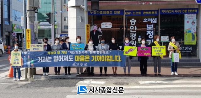 [½Ã»çÁ¾ÇսŹ® = ¿À½ÂÅà ±âÀÚ] °íÈﱺ(±º¼ö ¼Û±Í±Ù)Àº 8ÀÏ, 5¿ù °¡Á¤ÀÇ ´ÞÀ» ¸Â¾Æ °¡Á·ÀÇ Àǹ̸¦ »ì¸®°íÀÚ ¿©¼º´ÜüÇùÀÇȸ µî 50¿©¸íÀÌ Âü¼®ÇÑ °¡¿îµ¥ ¡®¼¼»ó¸ðµç°¡Á·, ÇÔ²² ÀÀ¿øÇØ¿ä!¡¯ ½½·Î°ÇÀ¸·Î °¡Á·ÀÀ¿ø Ä·ÆäÀÎÀ» Àü°³Çß´Ù°í ¹àÇû´Ù.