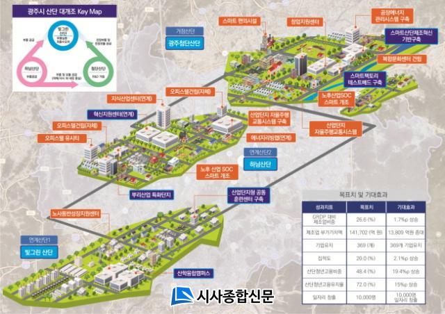 ±¤ÁÖ »ê´Ü ´ë°³Á¶ »ç¾÷Àº °ÅÁ¡»ê´ÜÀÎ ±¤ÁÖ÷´Ü°úÇлê´ÜÀÇ Çõ½ÅÀÚ¿øÀ» Ȱ¿ëÇØ ÀÚµ¿Â÷ ÀüÀåºÎǰ, º¹ÇÕ±ÝÇü Áß½ÉÀÇ »ê¾÷À» À°¼ºÇϰí, Çϳ²»ê´ÜÀº Â÷ü, ¼¨½Ã ÀÇÀå, ±ÝÇü»ê¾÷À» ÁýÁßÀ°¼ºÇØ ºû±×¸°»ê´Ü ±¤Áֱ۷ιú¸ðÅͽº ¿Ï¼ºÂ÷°øÀå¿¡ ¾çÁúÀÇ ºÎǰÀ» ³³Ç°ÇÒ ¼ö ÀÖ´Â ¡®±¤ÁÖÇü ÀÚµ¿Â÷»ê¾÷ Çù·Â º§Æ®¡¯¸¦ Á¶¼ºÇÏ´Â °ÍÀÌ ÁÖ¿ä °ñÀÚ´Ù. ³ª¾Æ°¡ ÷´Ü»ê´ÜÀº ½º¸¶Æ®°øÀå È®»ê ¹× Á¦Á¶µ¥ÀÌÅͼ¾Å͸¦ ±¸ÃàÇØ ½º¸¶Æ®»ê´ÜÀ¸·Î Á¶¼ºÇÏ°Ô µÈ´Ù.