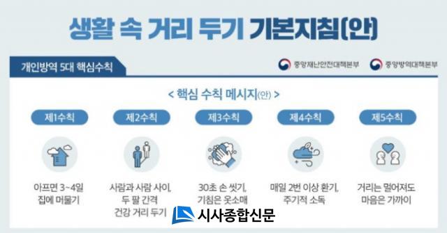 ¢º¾ÆÇÁ¸é 3~4ÀÏ Áý¿¡ ¸Ó¹°±â¢º»ç¶÷°ú »ç¶÷ »çÀÌ, µÎ ÆÈ °£°Ý °Ç° °Å¸® µÎ±â¢º30ÃÊ ¼Õ ¾Ä±â, ±âħÀº ¿Ê¼Ò¸Å¢º¸ÅÀÏ 2¹ø ÀÌ»ó ȯ±â, ÁÖ±âÀû ¼Òµ¶¢º°Å¸®´Â ¸Ö¾îÁ®µµ ¸¶À½Àº °¡±îÀÌ µî 5´ë ÇٽɼöÄ¢°ú ¸¶½ºÅ© Âø¿ë, ȯ°æ¼Òµ¶, 65¼¼ ÀÌ»ó °íÀ§Ç豺 »ýȰ¼öÄ¢, °Ç°ÇÑ »ýȰ ½À°ü µî 4°³ º¸Á¶¼öÄ¢À¸·Î ±¸¼ºµÇ¾î ÀÖ´Ù.