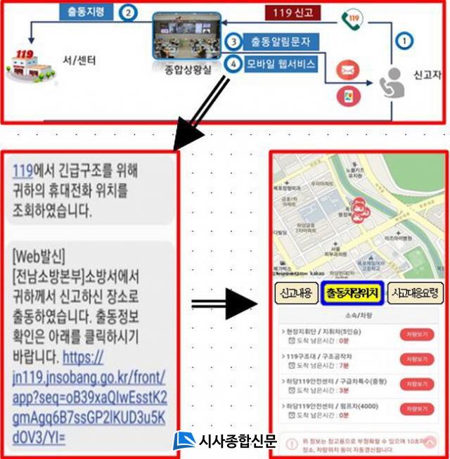 Àü³²¼Ò¹æº»ºÎ¿¡ µû¸£¸é 119Ã⵿ ¾Ë¸²¼ºñ½º´Â ½Å°íÀÚ¿¡°Ô Ã⵿»óȲÀ» ¹®ÀÚ·Î Àü¼ÛÇÏ´Â ´Ü¹æÇâ ¼ºñ½ºÀÇ ÇѰ踦 ³Ñ¾î, ½Å°íÀÚ°¡ Ã⵿Â÷·® À̵¿°æ·Î¸¦ ½Ç½Ã°£ È®ÀÎÇÒ ¼ö ÀÖ´Â ¾ç¹æÇâ ¼ºñ½º·Î °³¼±µÆ´Ù.