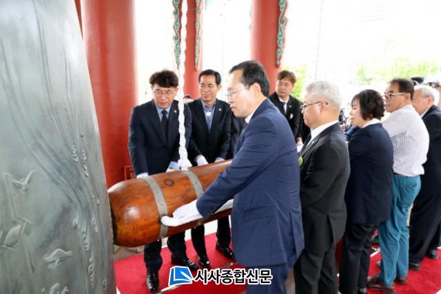 [½Ã»çÁ¾ÇսŹ® = ¿À½ÂÅà ±âÀÚ] Á¦40ÁÖ³â 5.18¹ÎÁÖȿ ±â³äÀÏÀÎ 18ÀÏ ¿À¿ù Á¤½ÅÀÇ ¼þ°íÇÑ Á¤½ÅÀ» ±â¸®±â À§ÇÑ ¹ÎÁÖÀÇ Á¾ ŸÁ¾½ÄÀÌ ±¹¸³¾Æ½Ã¾Æ¹®ÈÀü´ç ¾Õ ¹ÎÁÖÀÇ Á¾°¢¿¡¼ ¿·È´Ù.